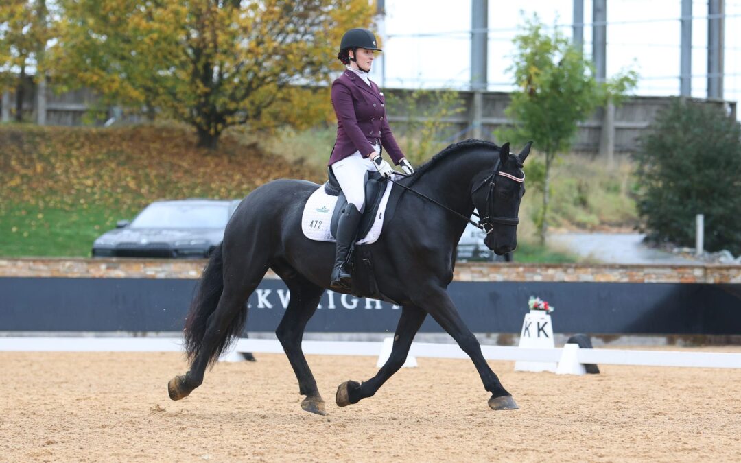 After the best night’s sleep I’ve had in ages, we woke up and prepared for the arena walk. Blake is used to being out 24/7 and so him being on a box for 4 hours followed by in overnight meant he really appreciated getting out! We had a cheeky cooked breakfast in the cafe (highly reccomend). follwed by a couple of chilled hours watching some tests. I went off to do some filming for the wonderful UK Friesian Federation, while my super groom Holly plaited, groomed and tacked my horse up ready for my test.